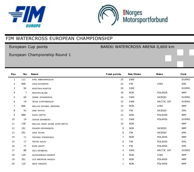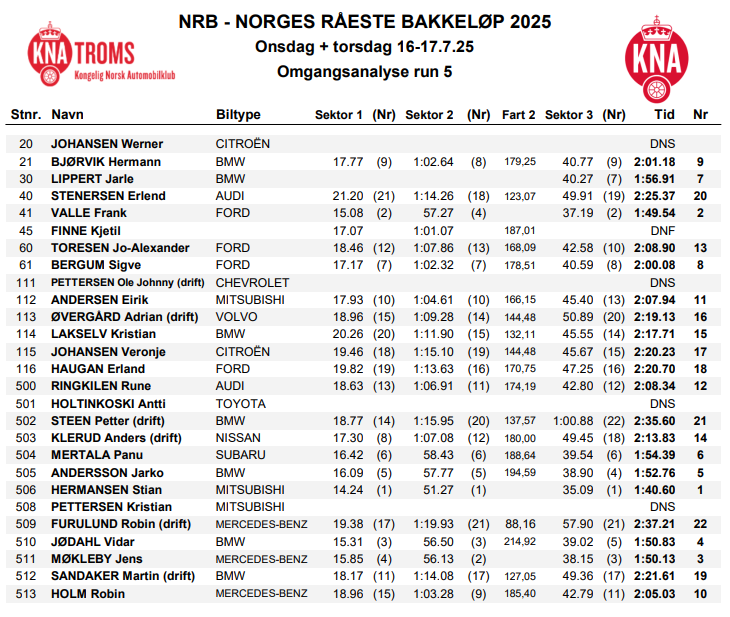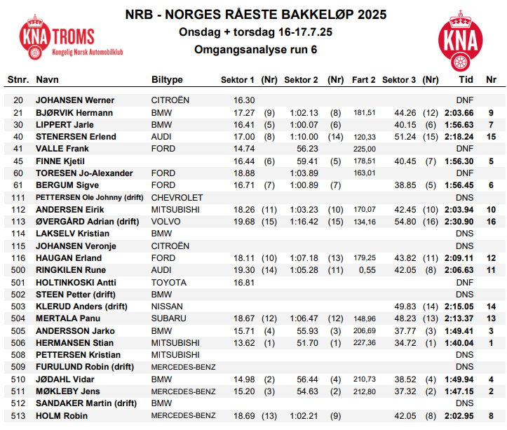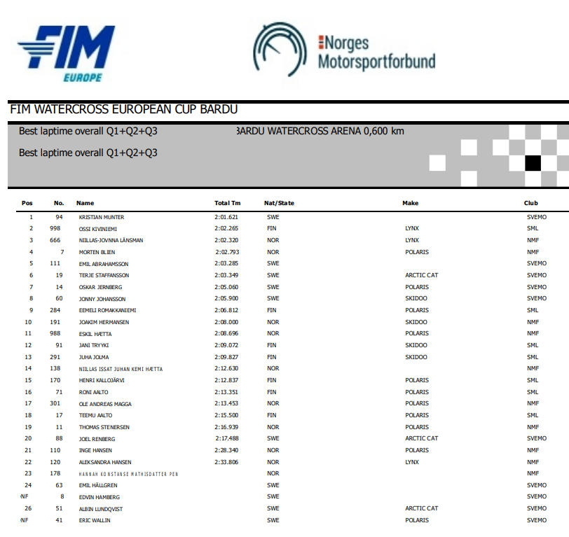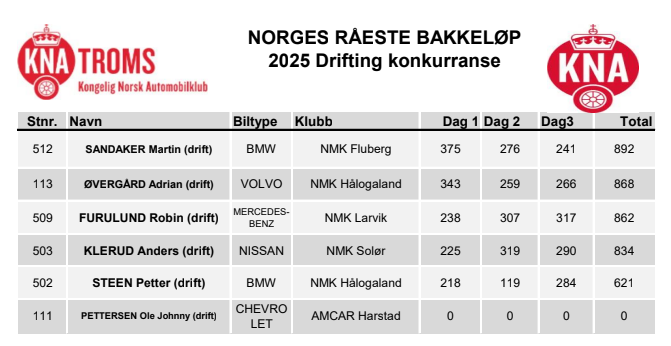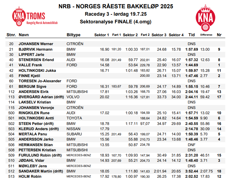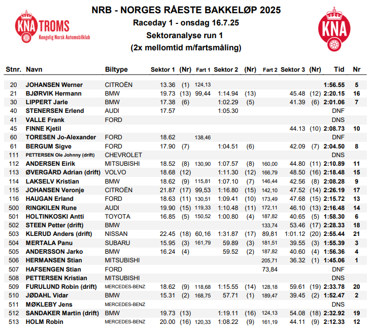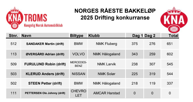 - Resultater lørdag 2023